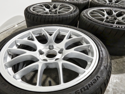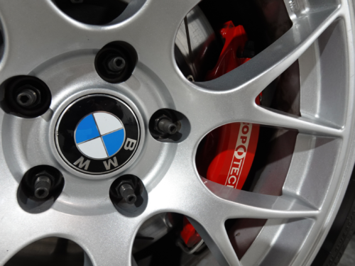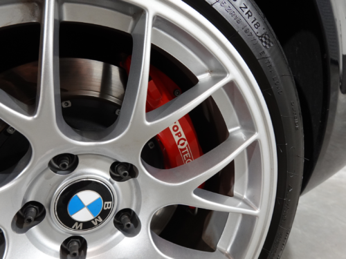 The modifications are deliberate and cohesive. Stoptech big brake kit all around. Dinan Stage 2 suspension with front camber plates running a square setup. Carbon fiber roof swap making it a true slicktop — lighter and cleaner. Two complete sets of 18x10 Apex EC7 wheels, silver and anthracite, both at 85% tread — Michelin PS4S on the silvers for the street, Pilot Sport Cup 2s on the anthracite set for when the road gets serious. Schroth four-point harnesses in red for both seats. Carbon Black over black leather, six-speed manual, cold weather package. At 100,883 miles this car has been used — and maintained, upgraded, and prepared every step of the way. Buy it and drive it.